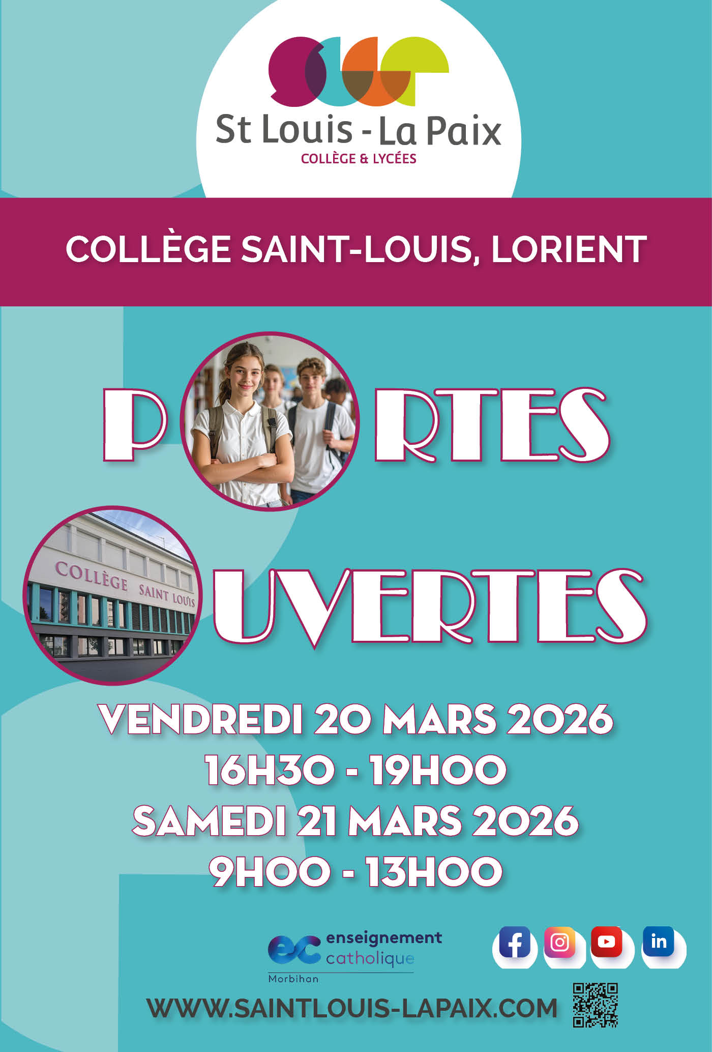 Les Portes Ouvertes du collège Saint Louis de Lorient auront lieu : le Vendredi 20 Mars de 16h30 à 19h …