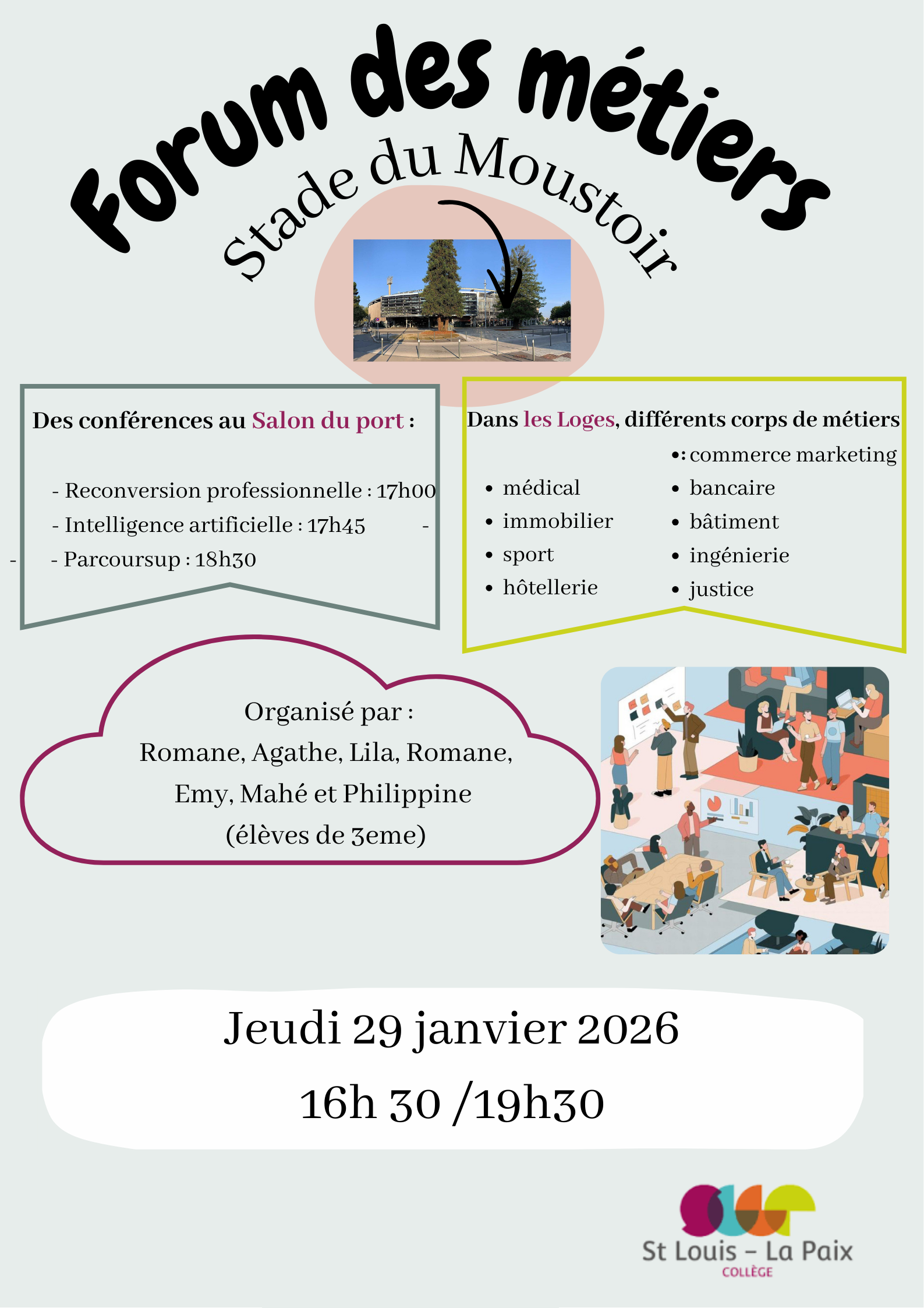 Un forum des métiers est organisé par le collège Saint Louis le Jeudi 29 Janvier de 16h00 à 19h30 dans…