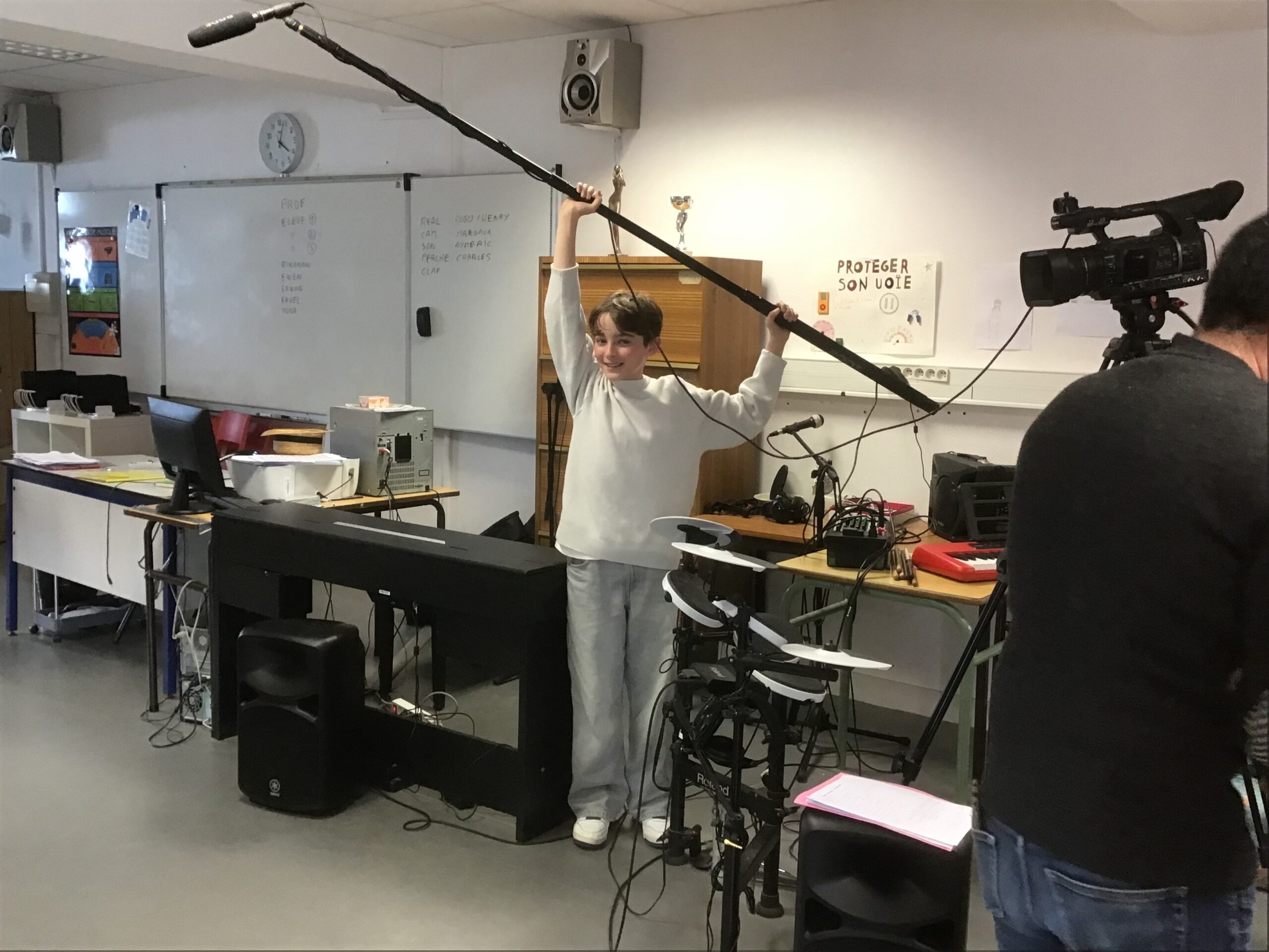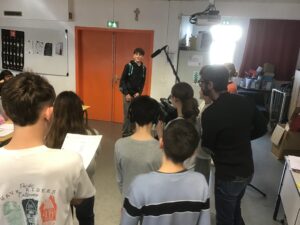 Cette activité a été proposée par Mme Bedouet, professeur de Français et Mr Pierre Guivarch, de l’association « Films et Culture ». Ce fut aussi l’occasion d’aborder le vocabulaire du cinéma et du théâtre. Ce travail d’équipe restera dans les mémoires!