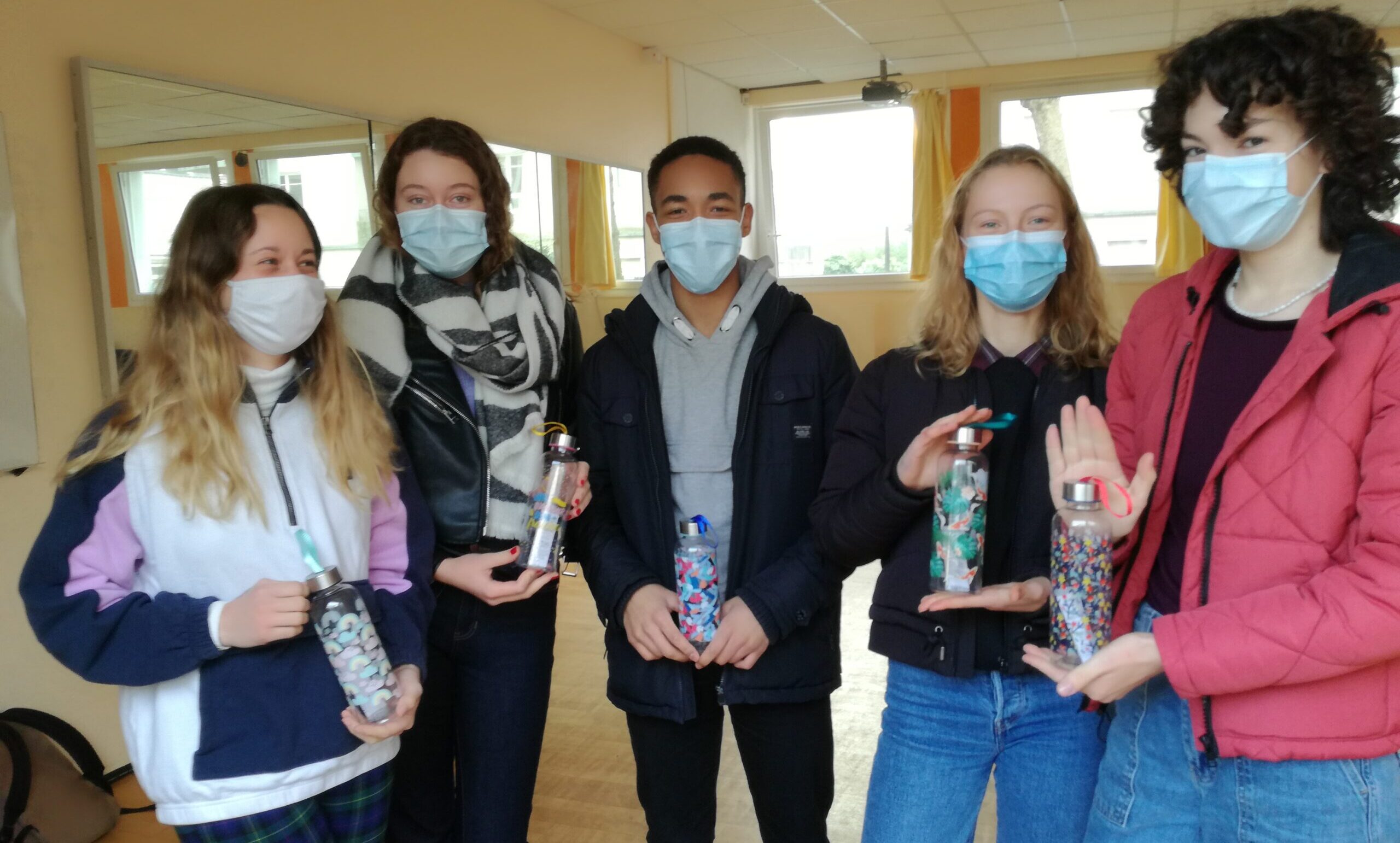 La première étape est de promouvoir l’utilisation d’une bouteille personnelle à la place de bouteilles en plastique. C’est dans ce but que les élèves proposent une vente de bouteilles personnelles. Les bénéfices récoltés seront reversés a une association locale afin de soutenir un projet de développement durable. Une précommande de bouteilles aura lieu à la rentrée de janvier 2021.
