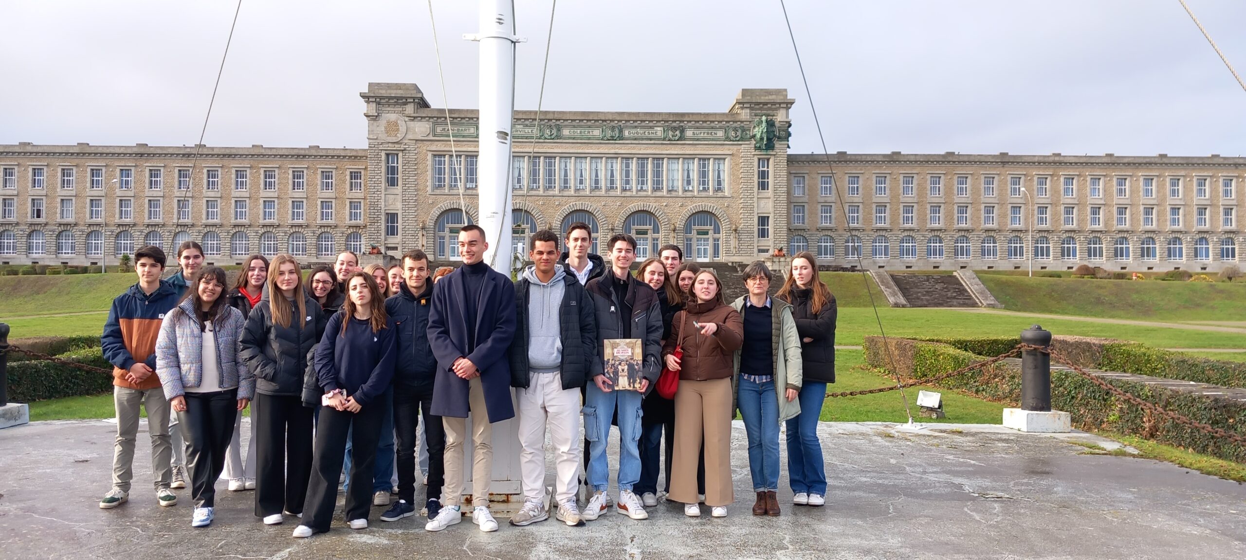Toute la classe de HGGSP de Mme Maury s’est rendue à Brest pour la remise du prix le 30 janvier 2023. Une journée bien remplie puisque le matin ils ont eu la visite commentée de la Base Navale. Visite très instructive et enrichissante qui s’est poursuivie l’après-midi par la découverte du centre d’Instruction Naval qui surplombe la rade de Brest.