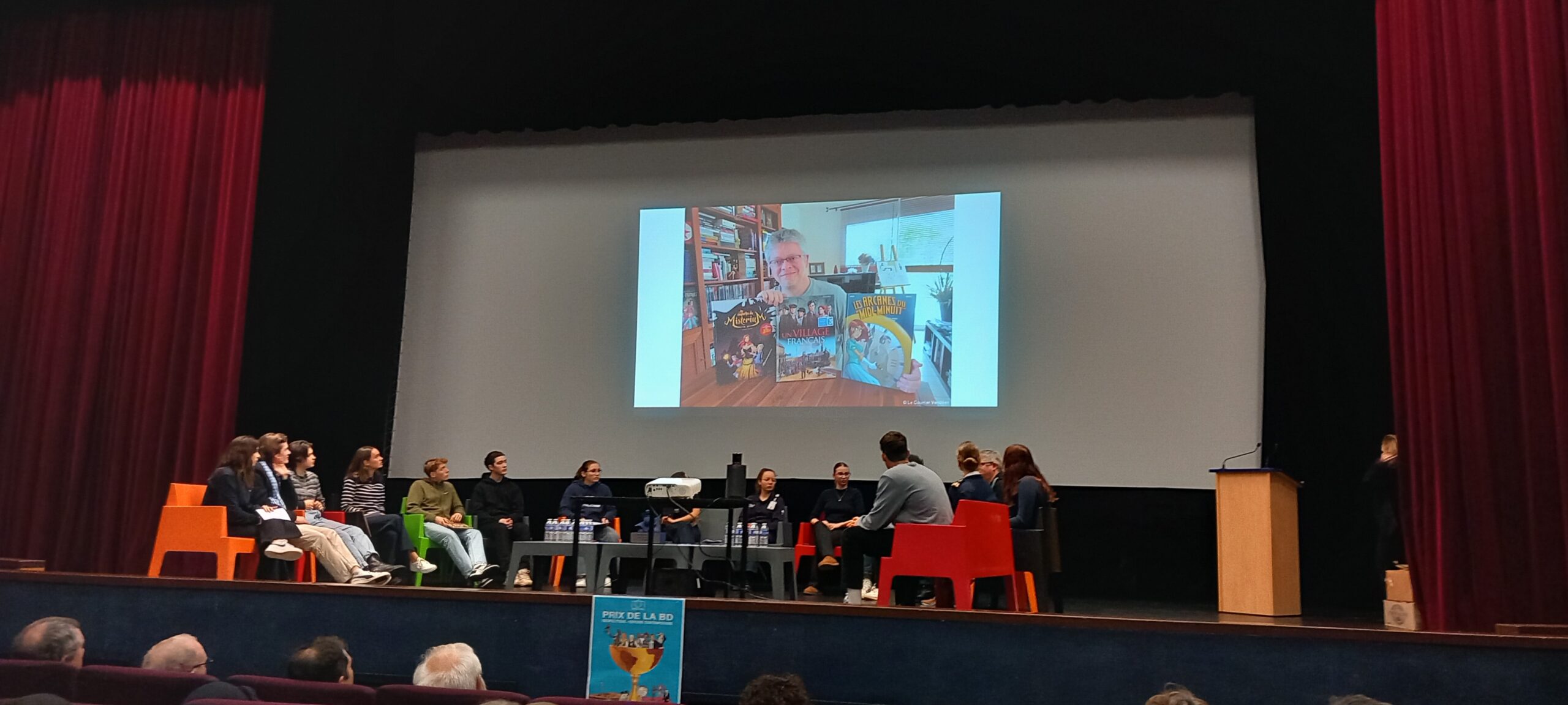 Jean-Charles Gaudin pour sa BD « Au nom du pain », arrivé en deuxième place, présent, a échangé avec les élèves sur son métier, ses recherches historiques, les relations dessinateur/scénariste.