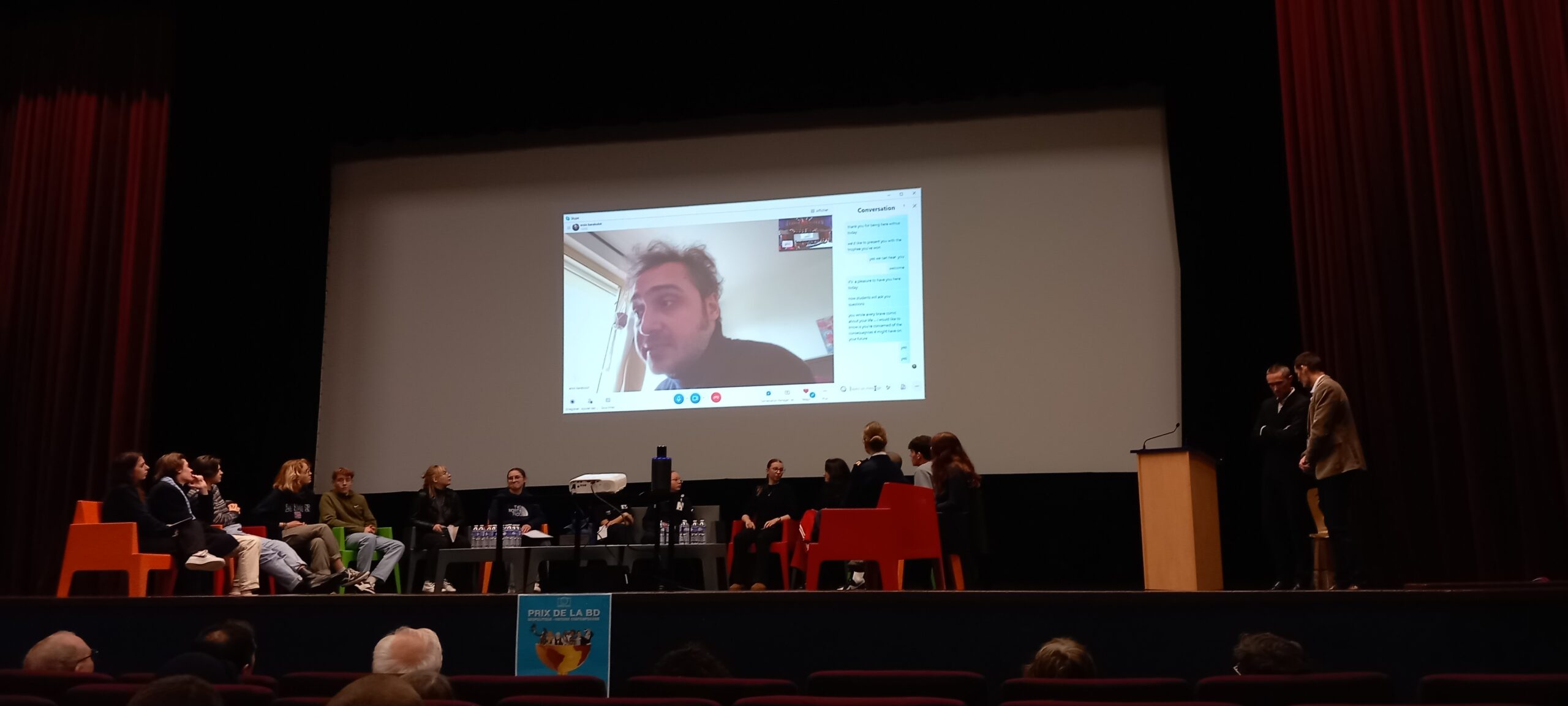 Ersin Karabulut, a reçu le premier prix de la BD géopolitique. Le dessinateur de presse turc réfugié en France a répondu par visioconférence aux questions des élèves posées en anglais.